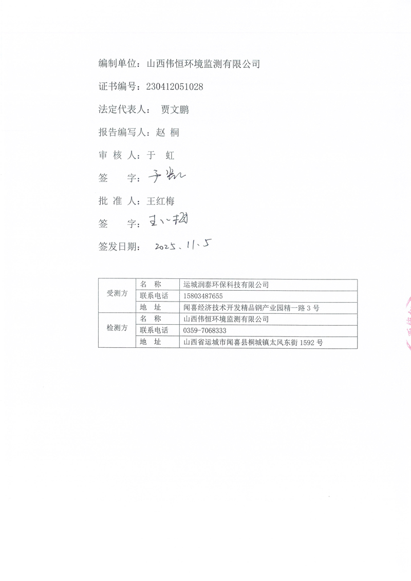 2025年潤泰環(huán)保十月份自行監(jiān)測報告