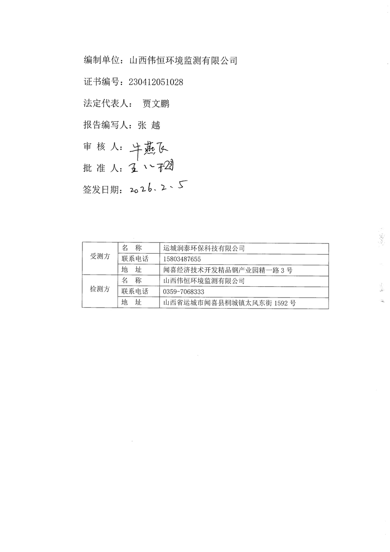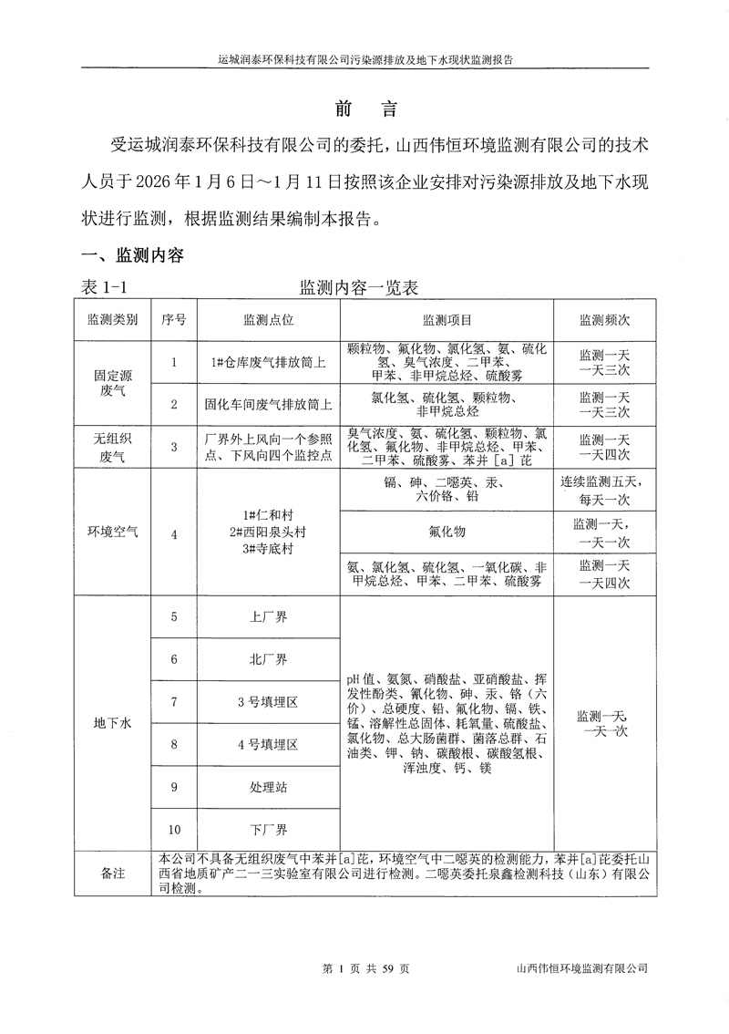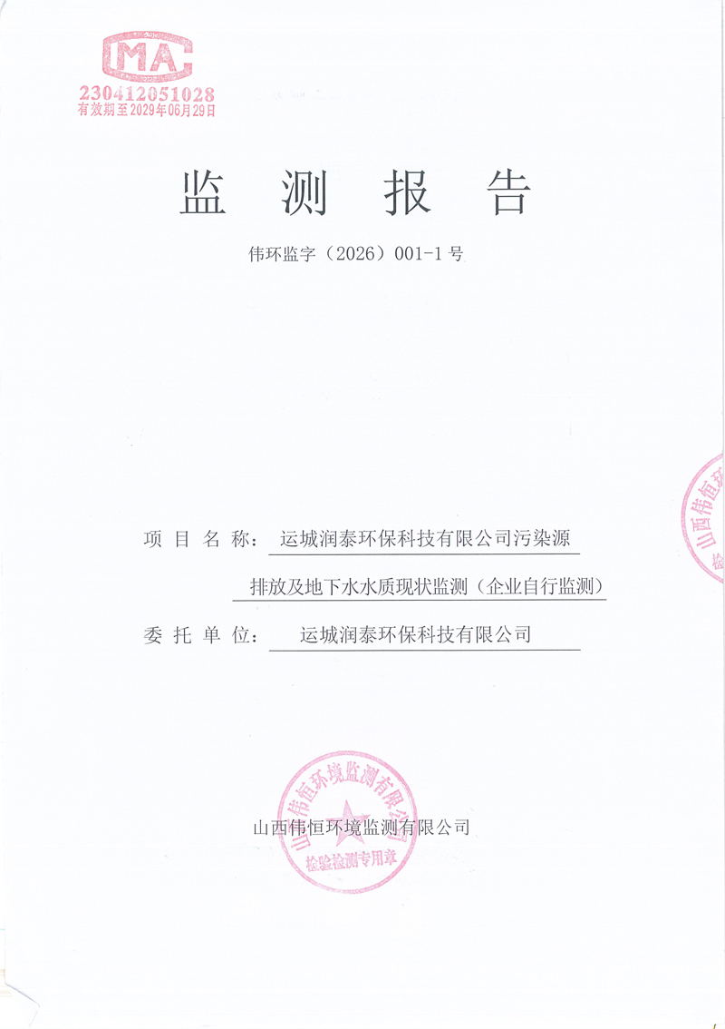 2026年潤泰環(huán)保一月份自行監(jiān)測報(bào)告